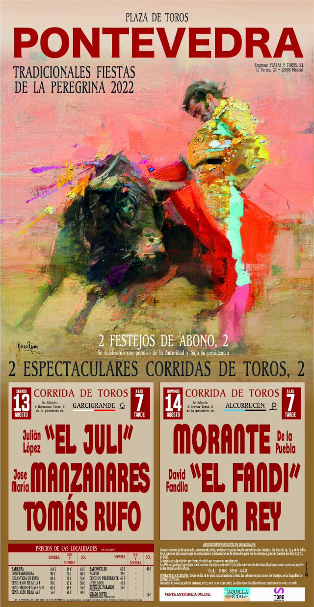 En la plaza pontevedresa estarán presentes ‘El Juli’, José María Manzanares, Tomás Rufo, Morante de la Puebla, ‘El Fandi’ y Roca Rey.