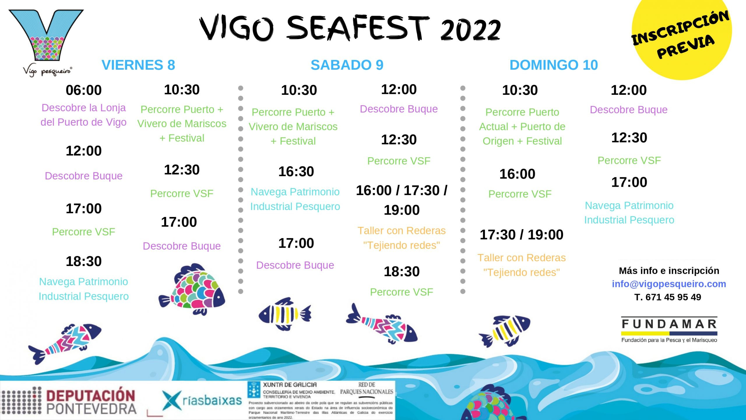 Parte de la programación la constituyen las visitas guiadas, patrocinadas por ARVI y desarrolladas por Fundamar. Por un lado, está el paseo "Recorre Vigo Pesquero: Puerto de Vigo, vivero y festival", que partirá el 8, el 9 y el 10 de julio a las 10:30 de la mañana.