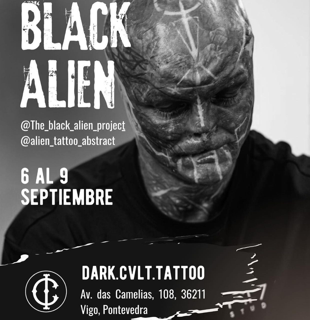 Black Alien estará tatuando en el centro Dark Cvlt Tattoo de Vigo, en la Avenida das Camelias, 108. Para pedir cita hay que enviar un mensaje directamente al perfil de Instagram del local.