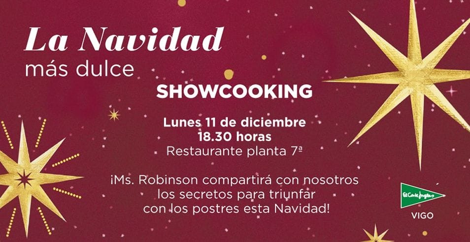 El showcooking es gratuito y forma parte de la programación navideña de El Corte Inglés de Vigo. Para inscribirse es necesario enviar un correo a eventosvigo@elcorteingles.es.