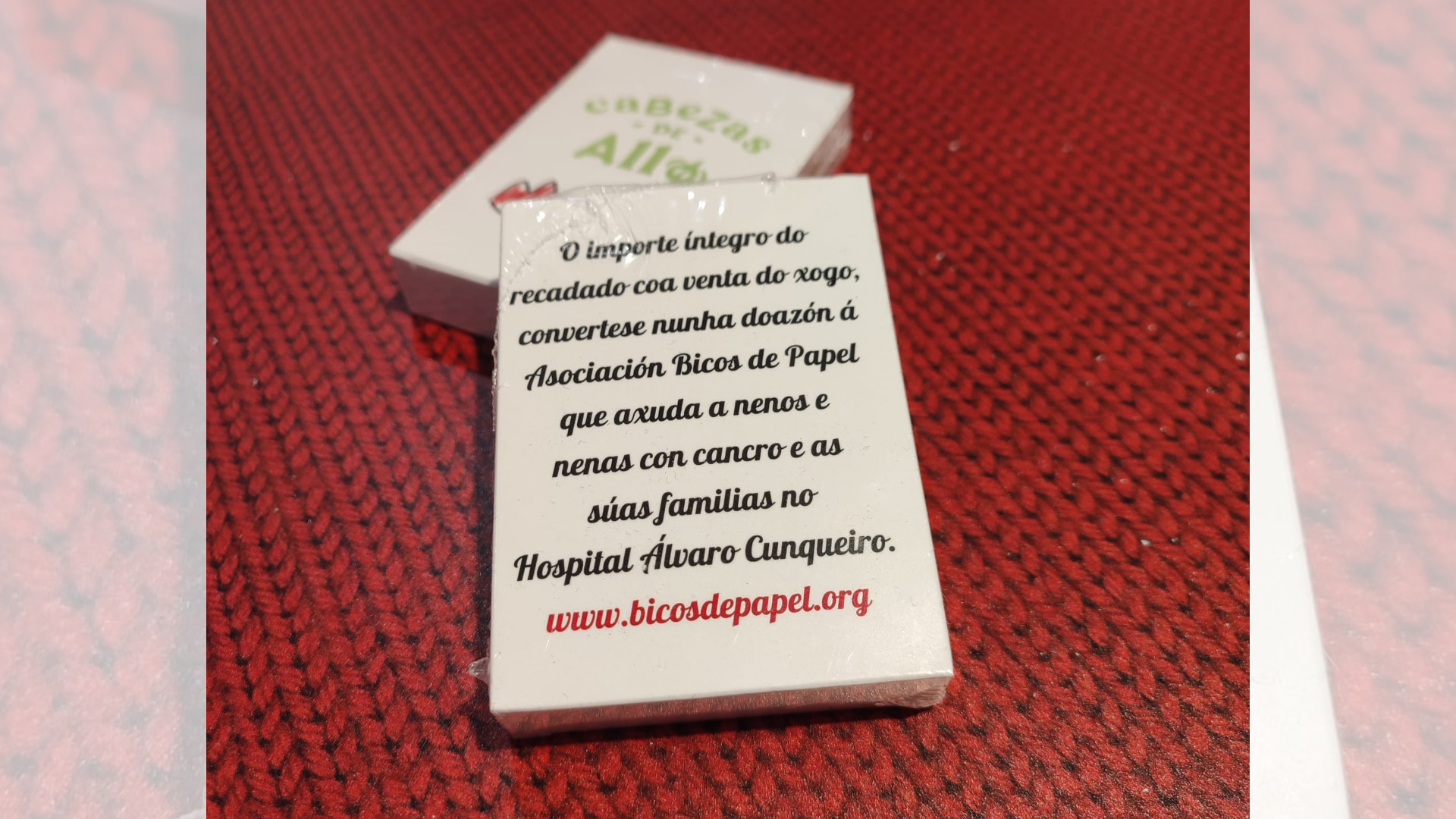 Cabezas de allo nació con voluntad solidaria desde el primer momento, para Jessica era su "principal objetivo". "Pensé en Bicos de Papel porque ya había colaborado con ellos, así que les expliqué la idea por ver si estaba dentro de sus posibilidades"; y si de sus alumnos consiguió un sí rotundo, de la asociación, también. "Son maravillosos, a todo te dan luz verde, además en tiempo récord", ya que Jessica habló con Bicos de Papel en noviembre y el juego está a la venta desde el pasado 12 de diciembre.