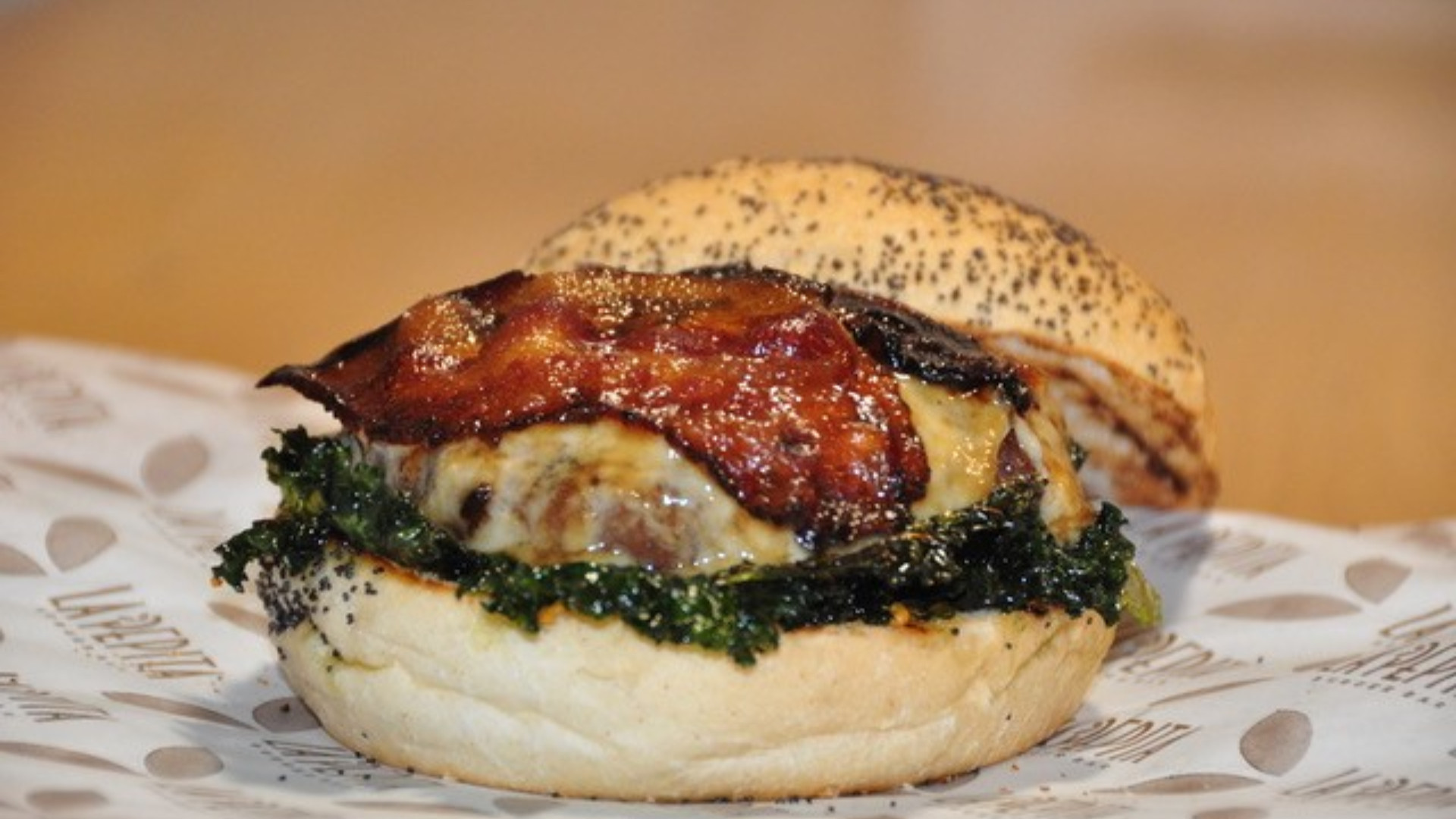 Se trata de una creación minimalista y conservadora. El protagonista es la mezcla de dos burgers de 150 gramos cada una, con la carne de vaca como protagonista, pasada por un ahumador artesano y cubierta de queso provolone, beicon ahumado y rúcula.