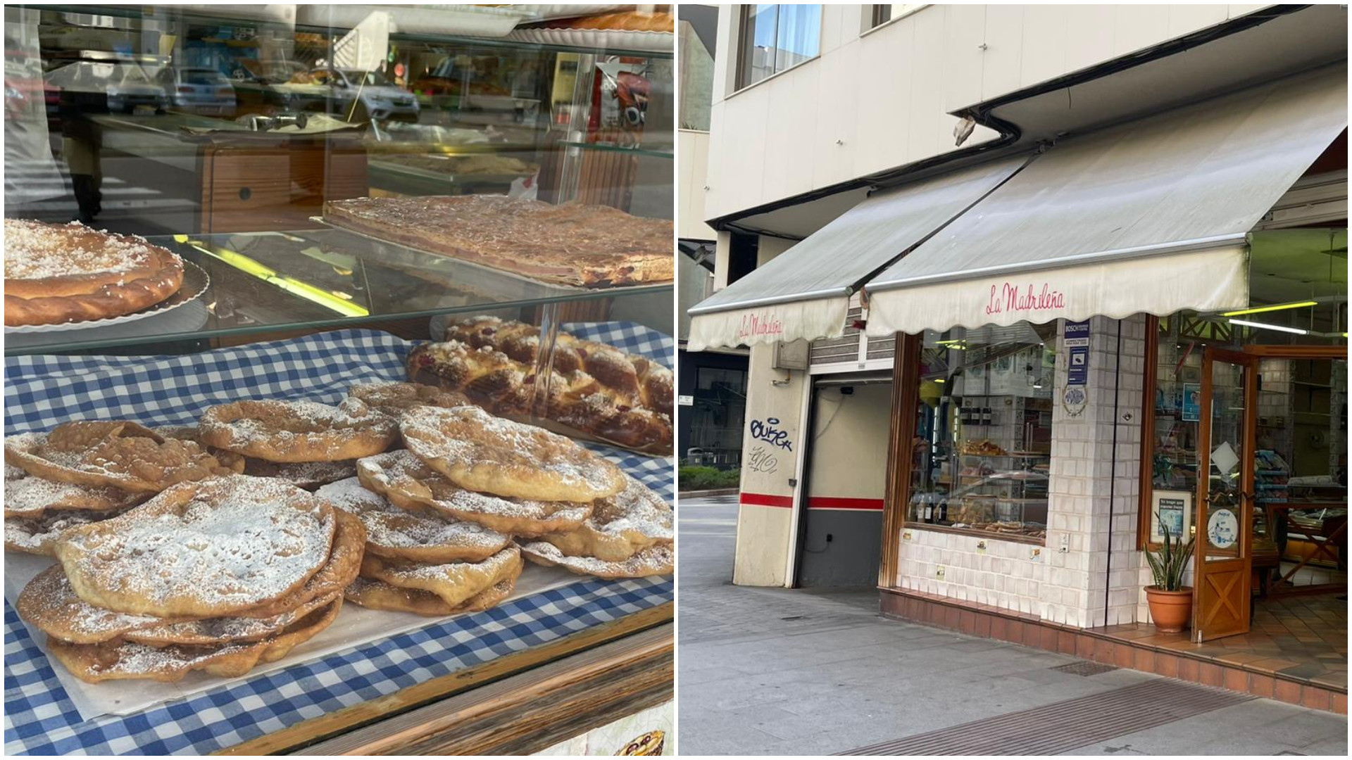 Comenzamos el paseo en Rosalía de Castro, en una de las panaderías y pastelerías más clásicas de la zona, La Madrileña. Presumen de hacer uno de los panes más sabrosos, pero para estas fechas sus hornos también miran al Carnaval.