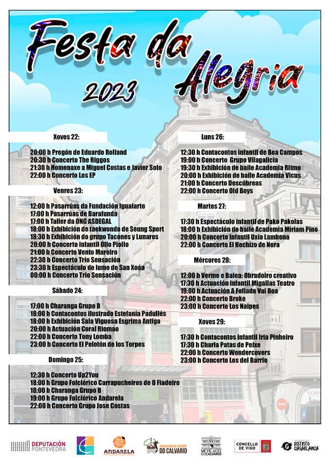 Descubre el programa completo de la Festa da Alegría 2023 del barrio vigués de O Calvario