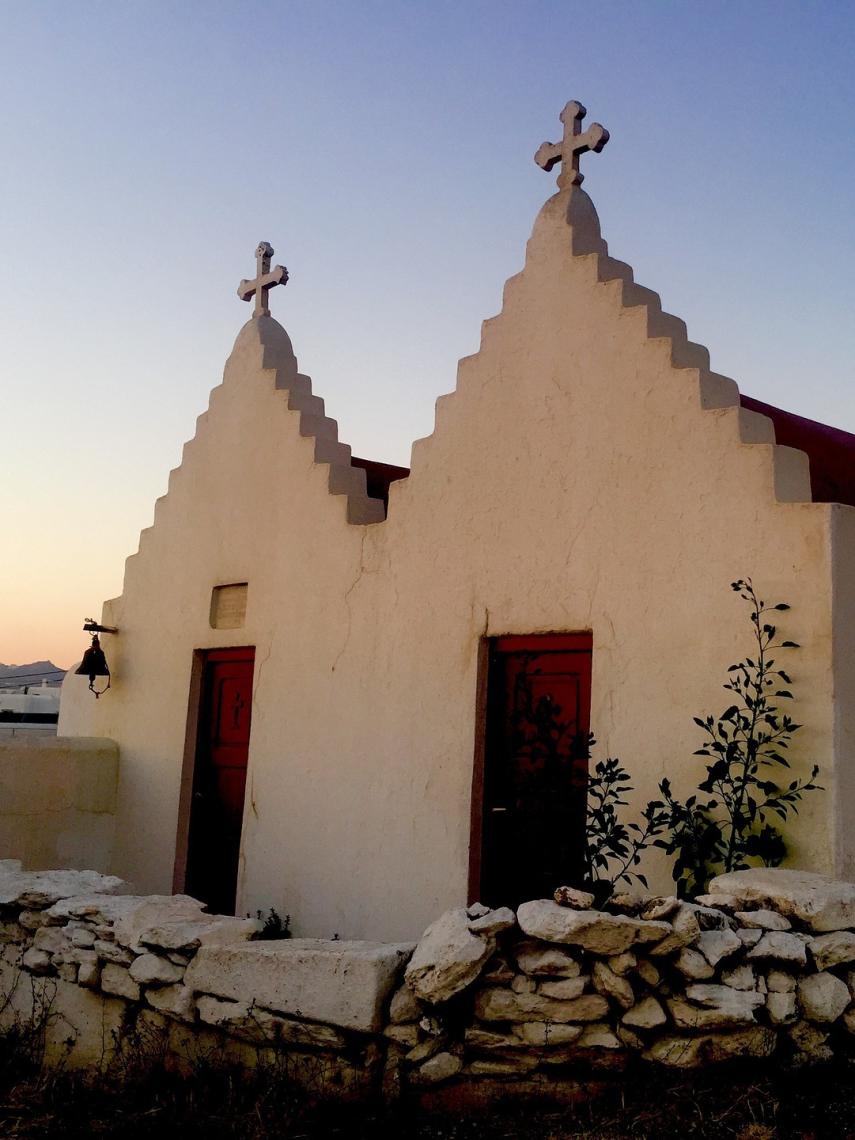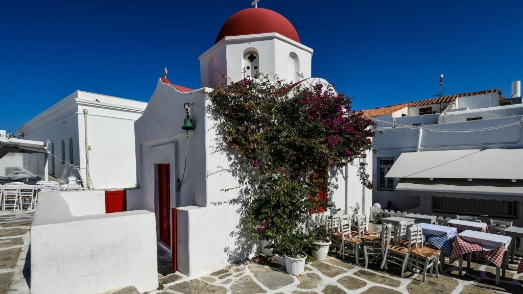Los molinos de viento de Mykonos forman parte del paisaje símbolo de la isla. Situados en la parte alta, en un gran mirador con vistas a la zona antigua de casas blancas, la pequeña Venecia y el mar. Destacan por su color blanco resplandeciente y alguno de ellos se ha restaurado para ser museos. En la isla se pueden encontrar hasta 400 iglesias, entre las que destacan la Iglesia de la Virgen Paraportiani y la Catedral. En la zona de Ano Mera llama la atención el Monasterio de la Panagia Turliani, con la torre de mármol, una cúpula roja y el interior adornado con iconos de la isla.