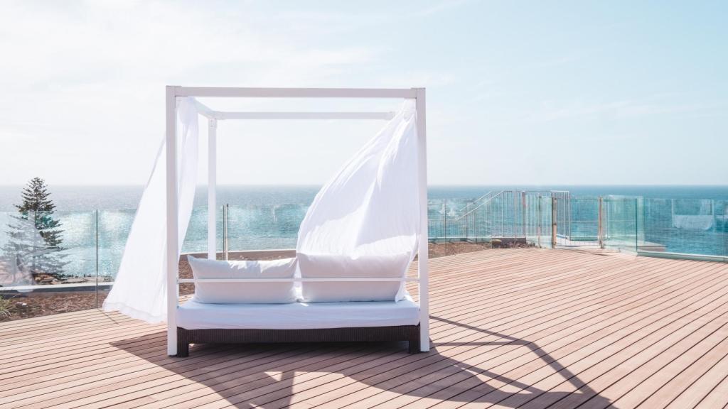Nuestro master plan empieza despertando tarde en una enorme y cómoda cama, continúa con un baño en una de las dos piscinas de la exclusiva azotea Up! ubicada en la 8ª planta del edificio, sigue con un desayuno en la misma terraza aprovechando su nuevo concepto Alisios y Sirocos -una champanería con más de 30 referencias de espumosos, muchas de ellas canarias- para disfrutar a continuación de un buen libro en la hamaca.